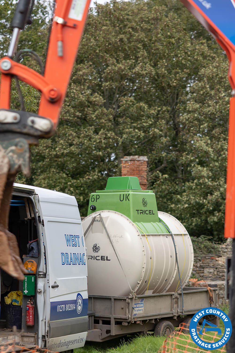 On-site, the team conducted health and safety checks and secured the area. Excavation for the tank and pipework was carried out using a 3-tonne excavator, with excavated material moved using a 1-tonne dumper. The tank was securely anchored in the trench, and a building control inspector signed off on the work. The old tank was safely decommissioned with a suction tanker, allowing the new system to be connected. The tank was set in concrete to manufacturer specifications, electrical work was inspected and certified, and the site was backfilled and reinstated to a high standard, leaving no trace of the work carried out.